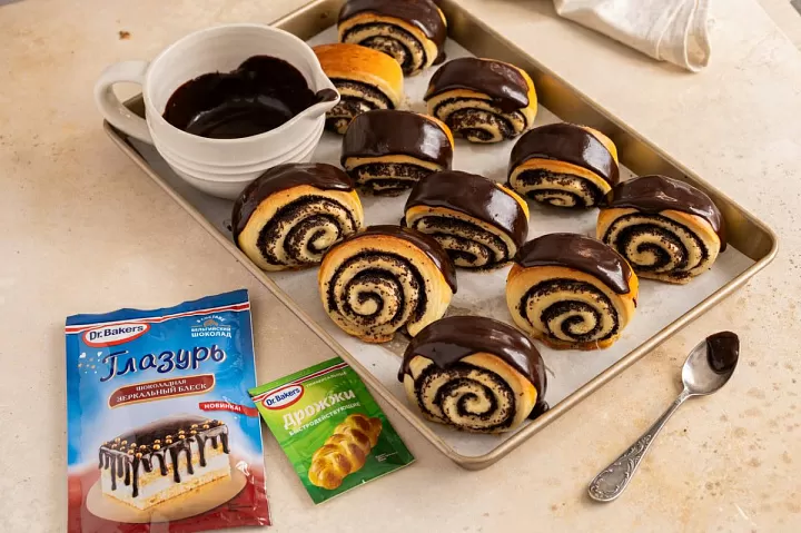 Булочки с маком и шоколадной глазурью