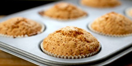 Все ингредиенты загрузить в дежу и перемешать лопаткой на средней скорости 2-3 минуты до получения однородной массы. Массу выложить в формы для маффинов. Температура выпечки: 180-190ᵒС. Время выпечки: 20-30 минут.