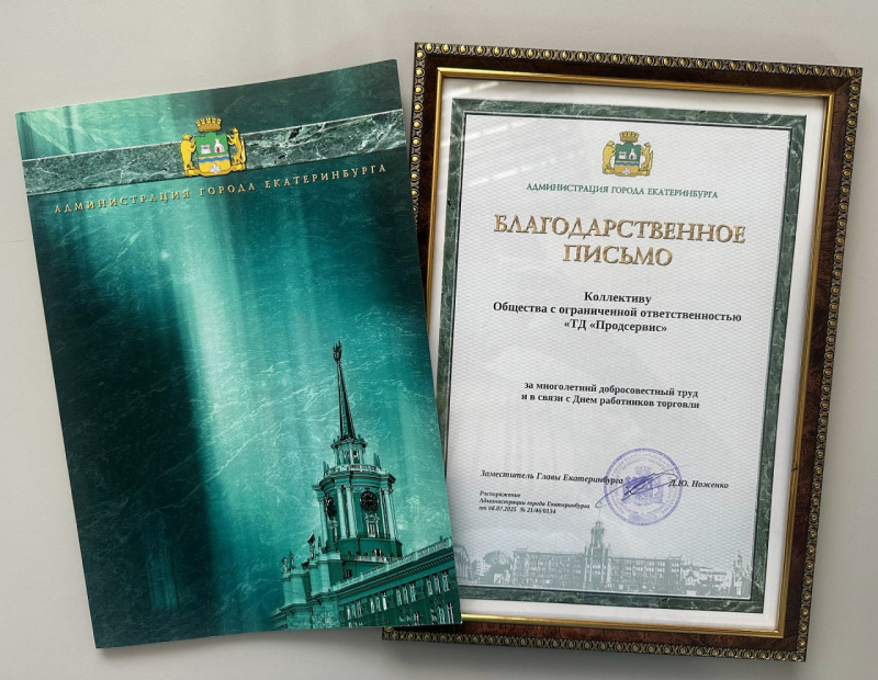 Коллектив ТД Продсервис награждён Благодарственным письмом