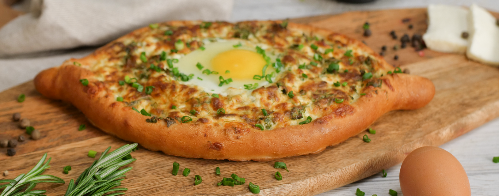 Выпекайте 15 – 20 минут. Через 20 минут после начала выпечки выньте хачапури из духовки, сделайте в начинке небольшое углубление и аккуратно выложите в него яйцо. Допекайте хачапури 1 – 2 минуты до желаемой степени готовности яйца.
