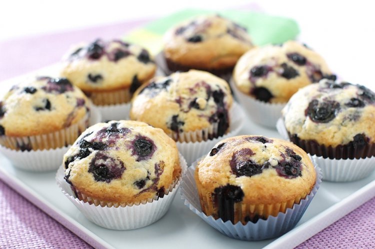 Способ приготовления: смешать все сухие ингредиенты и добавить теплое миндальное молоко с маслом. Перемешать тесто, дать постоять 5 минут и вмешать ягоды. Переложить тесто в капсулы для маффинов и выпекать при t 180С 30минут.