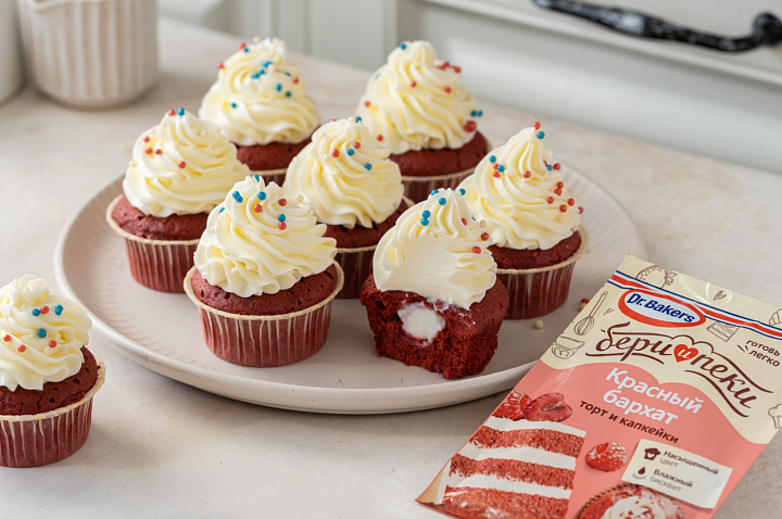 Эти капкейки — настоящая классика американской кухни, покорившая сердца по всему миру. Их главная особенность — невероятно нежный, влажный и пористый ярко-красный бисквит с легким какао-вкусом, который в тандеме с двумя видами крема создает идеальную гармонию: пышный масляный крем дарит ощущение праздника, а шелковый заварной — утонченную сладость.