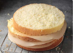 Остывший полностью бисквит вырезать из формы — пройтись тонким ножом по краю формы, завернуть в пищевую плёнку и убрать на 2–3 часа в холодильник для созревания. После этого можно разрезать бисквит кондитерской струной или хлебным ножом на нужное количество коржей.