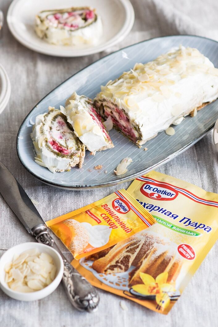 Фисташковый рулет с малиной