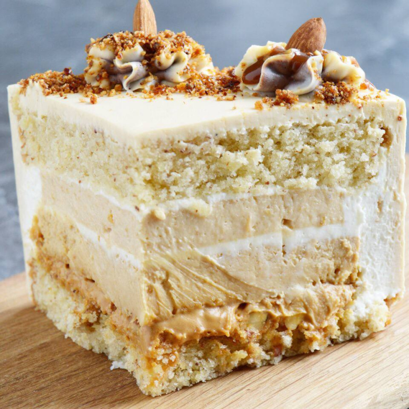 Бисквит-пропитка- карамель персиковая 300г-чизкейк миндальный-кремю персик -карамель персиковая 100г-крем-бисквит-пропитка.