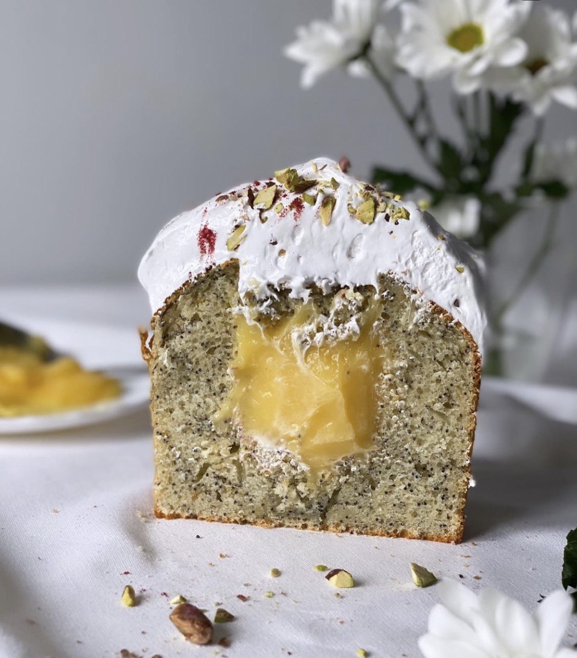 ТВОРОЖНО - МАКОВЫЙ КУЛИЧ С ЛИМОННЫМ КРЕМОМ И ШВЕЙЦАРСКОЙ МЕРЕНГОЙ
