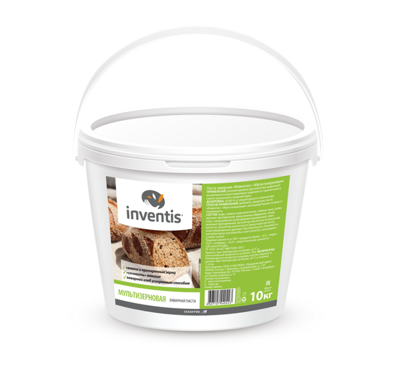 из пшеничной и смеси пшеничной и ржаной муки. В состав заварной пасты входят: семена подсолнечника и семена льна, ржаное резаное зерно, резаное овсяное зерно.