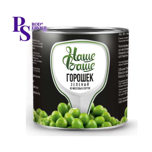Горошек зеленый из мозговых сортов выращен и произведен на Кубанском консервном комбинате в Краснодарском крае. Горошек молодой, горошек сочный, горошек нежный Наше Ваше сделает Ваш рацион полезнее и вкуснее. Горошек консервированный 100% натуральный, без ГМО, без консервантов, бех химии — только качественные проверенные и вкусные продукты на Вашем столе!
