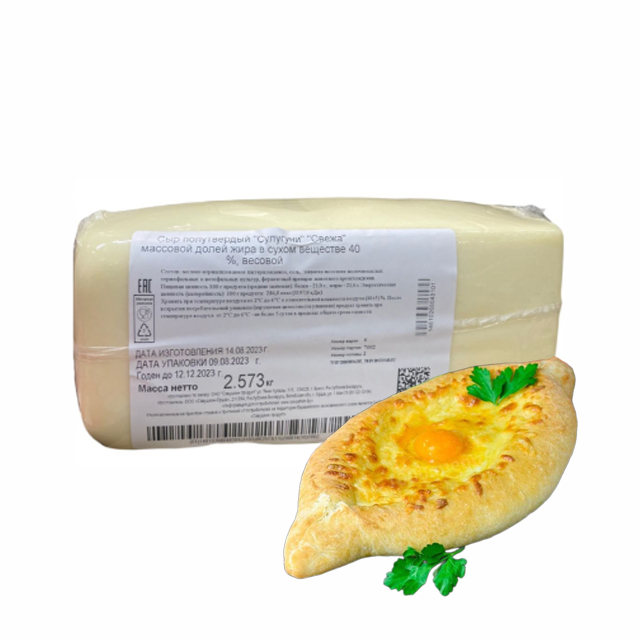 —Сыр полутвердый "Сулугуни" "свежа" 40%, 2,5 кг весовой. Савушкин