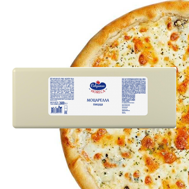 ТОВАР ВЕСЕВОЙ. ПРИМЕРНЫЙ ВЕС 1 УП. - 2,6 КГ. ПОСЛЕ ВЗВЕШИВАНИЯ МЕНЕДЖЕР СООБЩИТ ТОЧНЫЙ ВЕС. Полутвердый сыр Моцарелла Pizza – сыр группы Паста Филата – наилучшим образом раскрывает свои вкусовые качества под воздействием температуры. Продукт обладает нейтральным вкусом и специфической структурой, благодаря которой сыр является плавким и тягучим. Наилучшим образом соответствует требованиям профессиональных поваров. Массовая доля жира в сухом веществе 40 %.