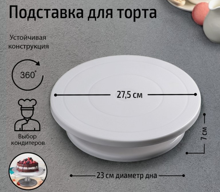 —Подставка для торта вращающаяся Доляна, 27,5*7 см, арт.9023910
