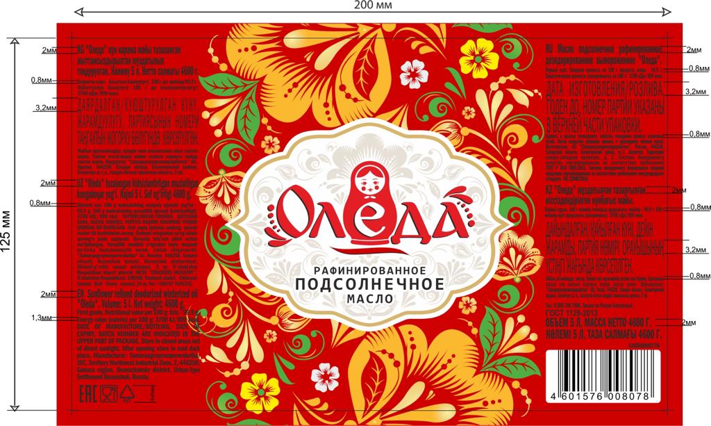 —Масло подсолнечное рафинированное "Оледа", 5 л/4,6 кг
