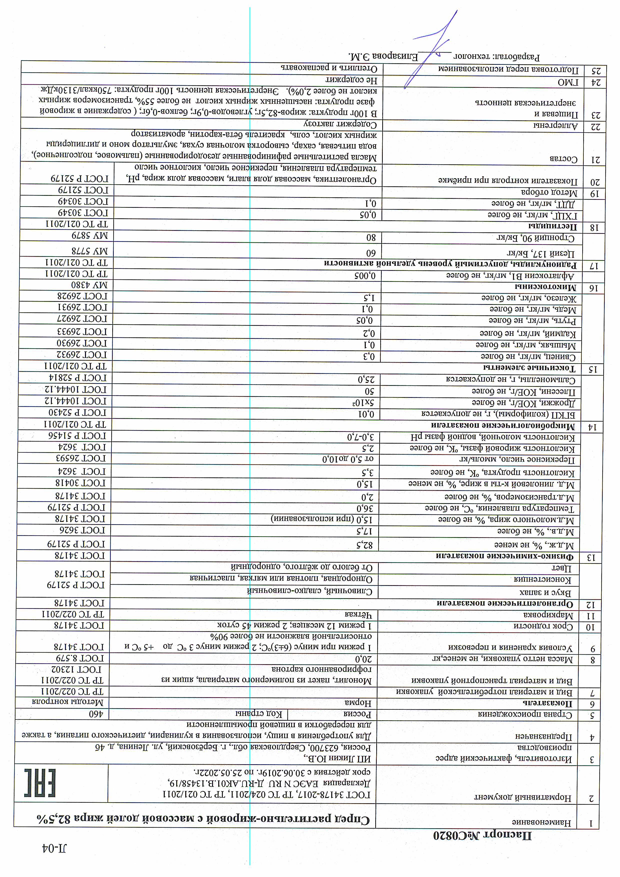 —Спред растительно-жировой мдж 82,5% (Березовский) 20 кг