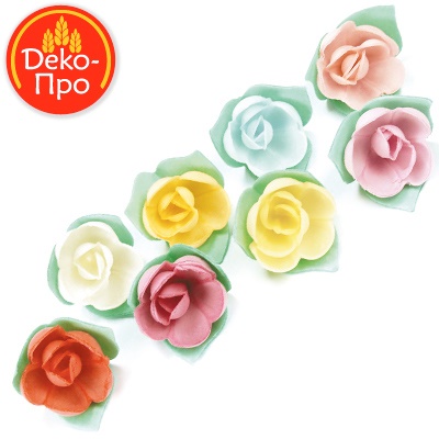 Украшение вафельные РОЗЫ на трилистн., 10 шт, МИКС