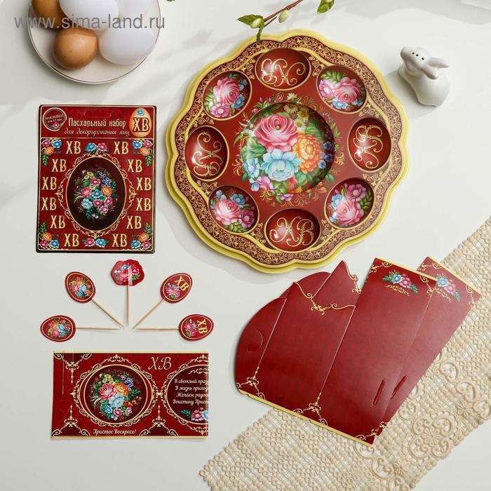 Подставка пластиковая для 8 яиц и кулича - 1 шт., ободок - 1 шт., наклейки, декоративные элементы (топперы для кулича) - 5 шт., конверты под салфетки - 2 шт.