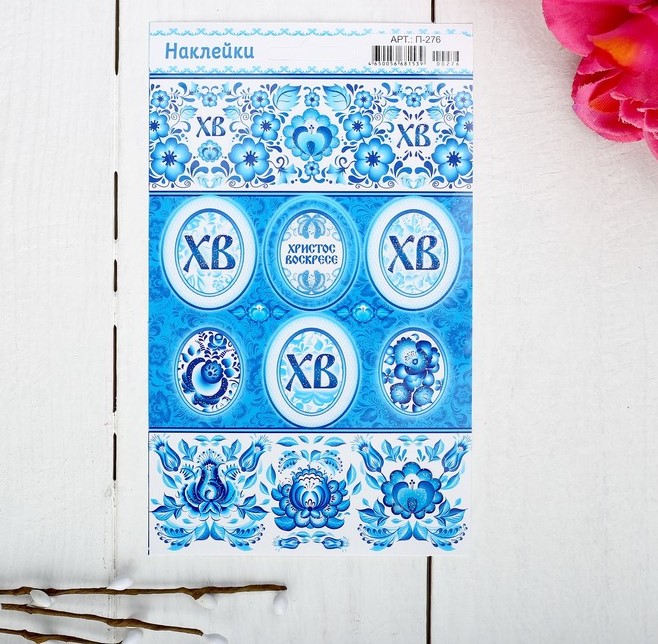 Наклейки пасхальные "Гжель - 3" с глиттером, арт.4862024