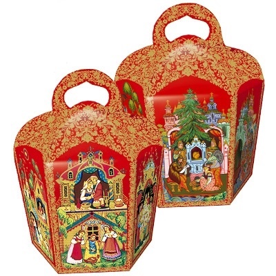 —Коробка из картона для кулича 134 мм Красный Палех арт.59488
