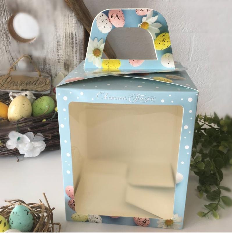 Моноблок под КУЛИЧ с окном НЕБЕСНАЯ голубая, 150*150*180мм, арт.КУ-00768