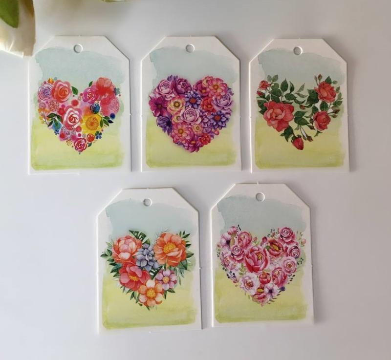 Комплект бирок 6шт "Весенние сердца" 40*55мм, арт.КУ-00765 (кор/50компл)