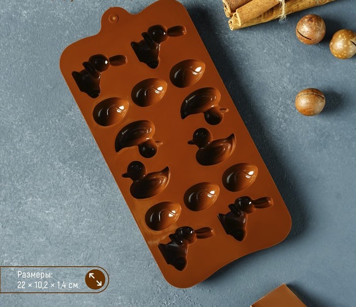 Форма для льда "Зайцы, утки и яйца" 22*10,2*1,4 см, 14 яч, цвет шоколадный