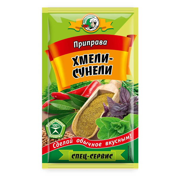 Великолепная кавказская приправа. Традиционно используется в харчо, сациви и других блюдах грузинской и армянской кухни. Придает пикантность и обогащает вкус и аромат любых блюд из мяса, птицы и овощей.кориандр молотый,укроп сушеный зелень,майоран,куркума,базилик,соль,перец красный молотый острый,лавровый лист молотый,розмарин