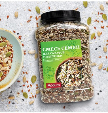 Состав: семя подсолнечника, семя льна, семена тыквы, кунжут белый, кунжут черный