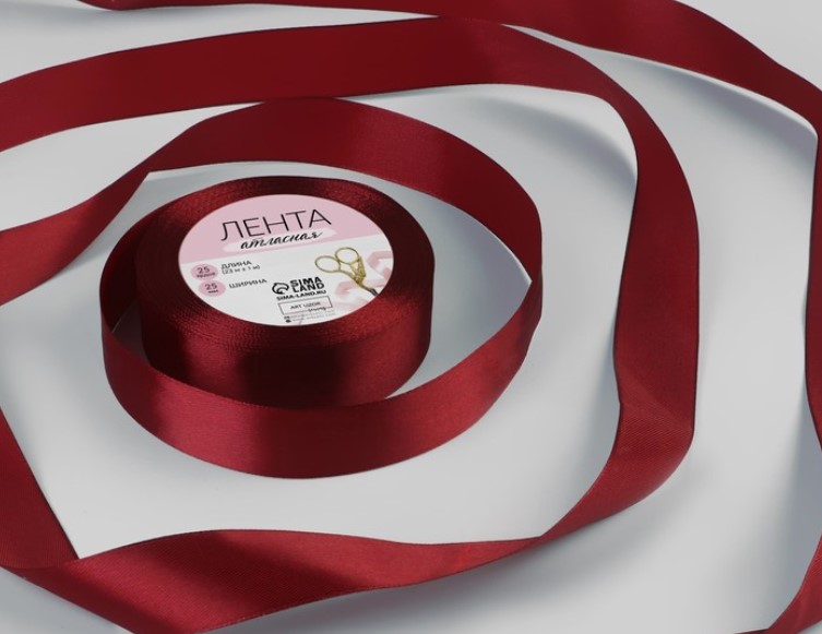 —Лента атласная, 25 мм*23м, цвет бордовый №156, арт.5052125