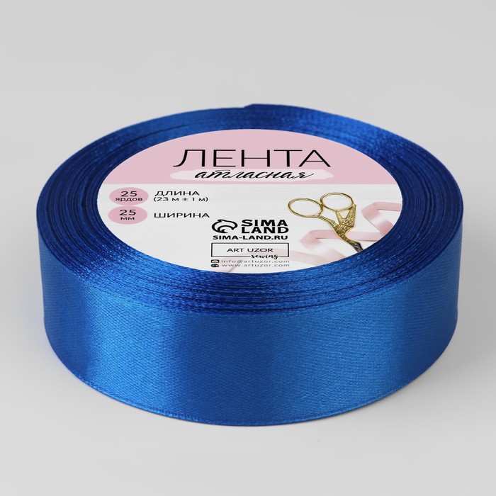 Лента атласная, 25 мм*23м, цвет синий №40, арт.3019784