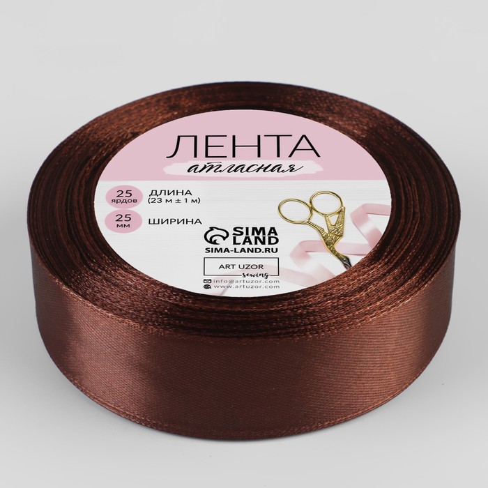 —Лента атласная, 25 мм*23м, цвет темно-коричневый №74, арт.3019793