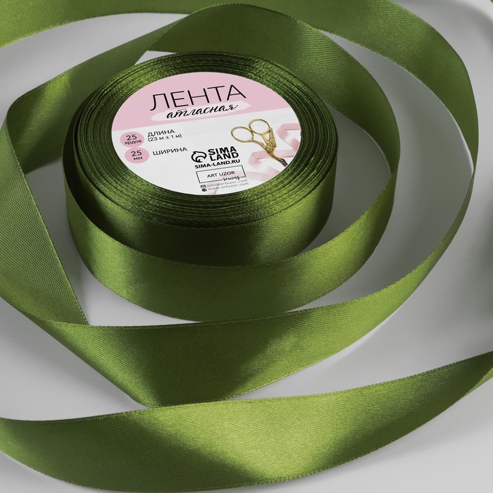 Лента атласная, 25 мм*23м, цвет травяной №55, арт.5052158
