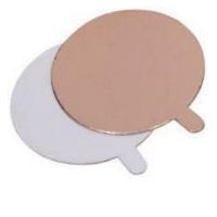 Подложка для пирожных круглая с ручкой (золото, белая) d-8 см, толщ.1,5 мм, арт. п.1,5-80 КЗБР